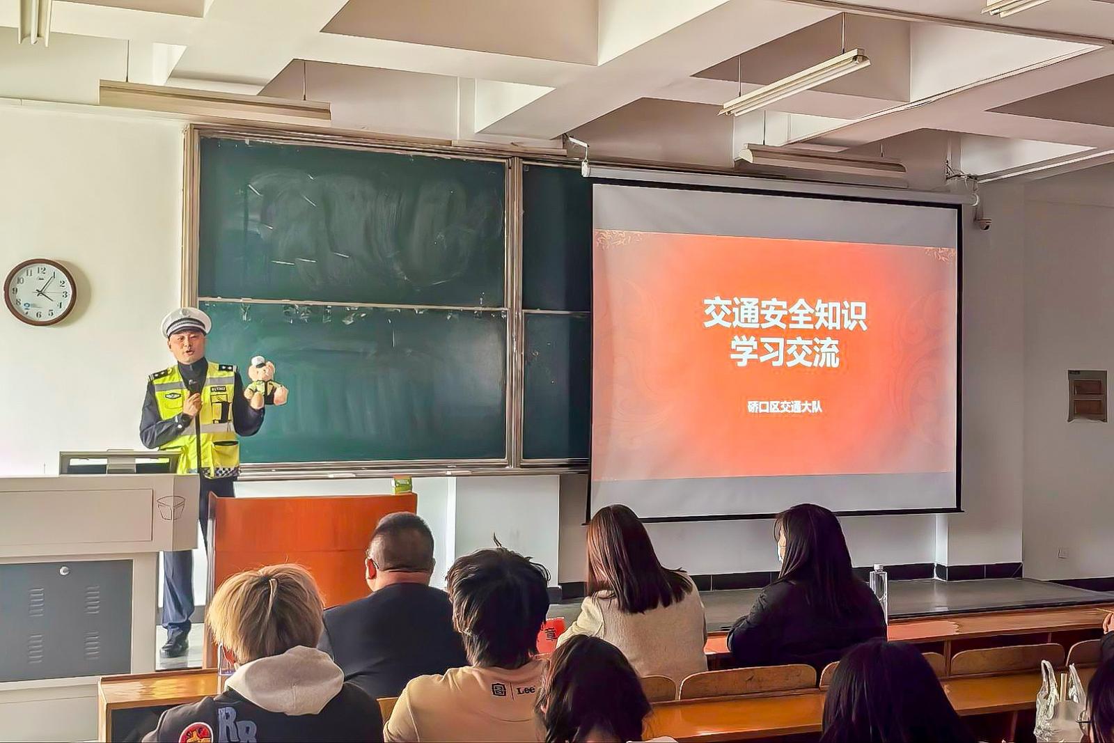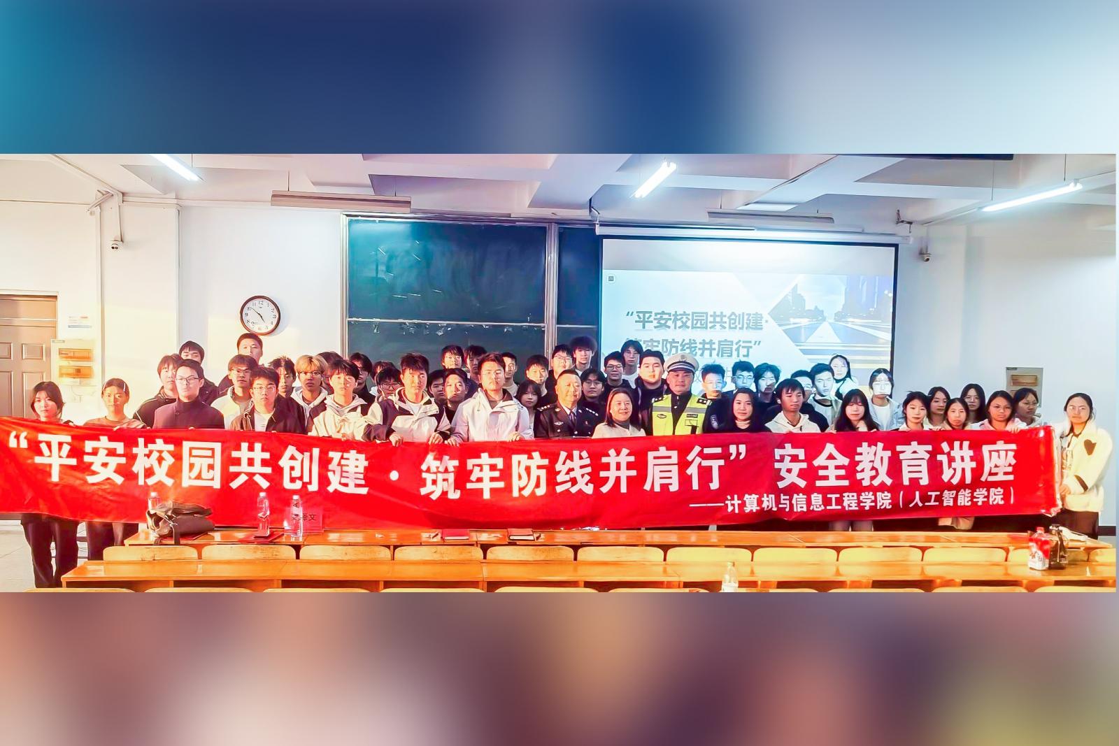 (通讯员 李媛媛 )为全面增强师生的交通安全意识,切实构建校园道路交通安全的坚实防线,共同营造平安和谐的校园环境,12月3日下午,计算机与信息工程学院(人工智能学院)特邀请武汉交警十佳通讯员、十佳宣讲员,武汉市公安局硚口区分局交通管理大队宣教科长杜泽文警官来校举办交通安全专题讲座。计算机与信息工程学院(人工智能学院)党总支书记徐章、副书记袁子缇,全体辅导员以及25级学生、安全信息员近300人参与了此次讲座。